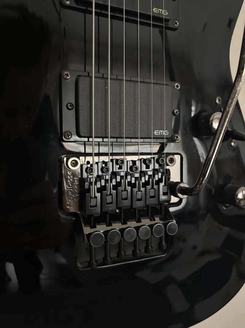 Emg 81/85 aktív hangszedőkkel szerelve, igazi metál fenevad mégis elegáns, végig körben berakásos dísszel. A floyd roseban a babákat cserélni kellett, mert a gyáriban a menetek el voltak már öregedve, de semmiben nem változott a hangolás tartása, vagy a játék élmény. Sajnos én már csak gyönyörködöm benne, de másik típust szeretnék helyette. Hasonló árkategóriában csereajánlatot meghallgatok.