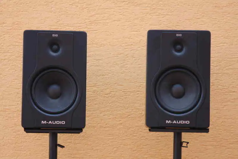 M-Audio BX8 D2: Aktiver Studio-Monitor: 130 W Leistung, 8˝ magnetisch geschirmter Tieftöner, 1˝ magnetisch geschirmter Hochtöner, 40 Hz - 22 kHz Frequenzgang, 90 dB SPL, XLR und 1/4 ˝ Klinkenanschlüsse, Abmessungen: 30,48 cm x 25,4 cm x 38,1 cm, Gewicht: 11,97 kg/Stück