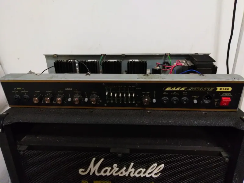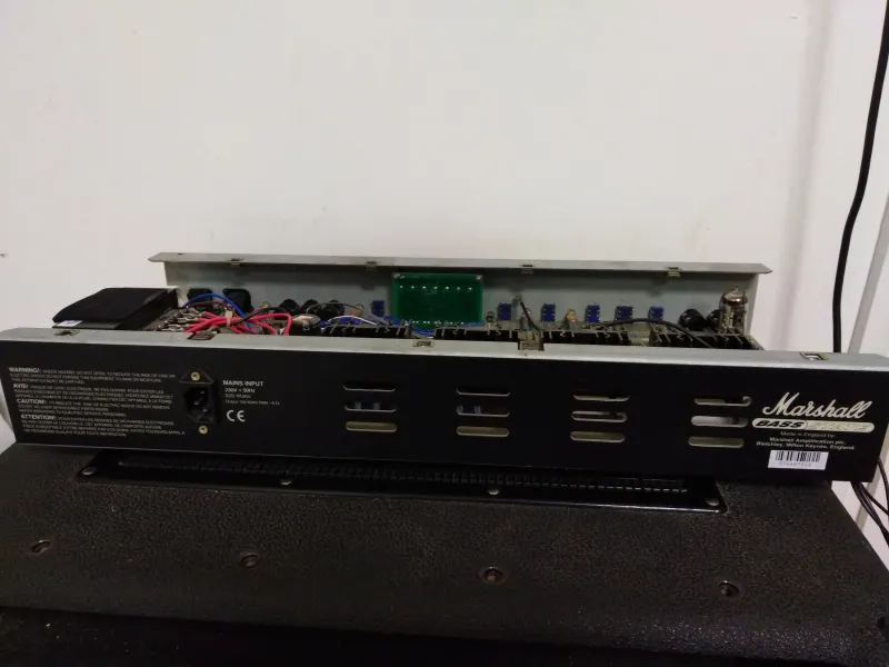 Eladó Marshall Bass State 150 előfokcsöves kombó erősítő része tönkrement trafóval, alkatrésznek, barkácsolásra akármire.Trafó hiba előtt minden funkciója működött az aktív bemenet kivételével, de néhány régebbi javítás is látszódik rajta.