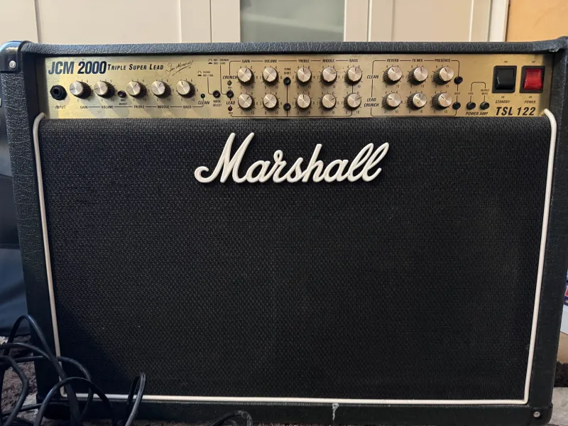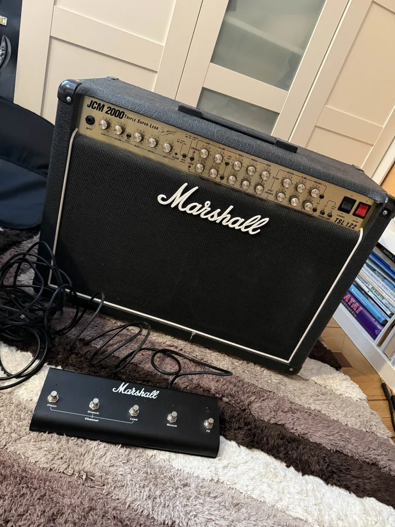 Eladó Marshall JCM2000 TSL122 gitárkombóMarshall JCM2000 TSL122 csöves gitárkombó eladó. Évek óta nem volt használva, most kipróbáltam: minden funkció rendben működik, szépen szól, csöves erősitőre jellemző minimális alapzaj van, játék közben nem hallható. Külseje nem tökéletes, képen látható.