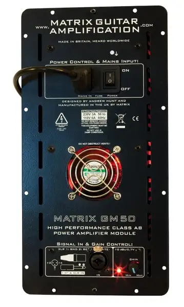 Guitar/Bass power amp MATRIX GM50 is a versatile, lightweight power amplifier module designed for musicians who need a quality, high powered mono-block amplifier solution .