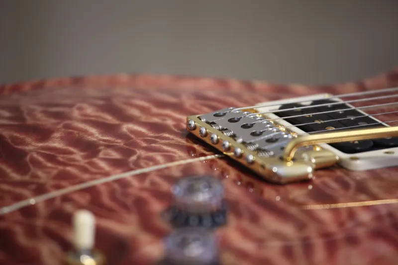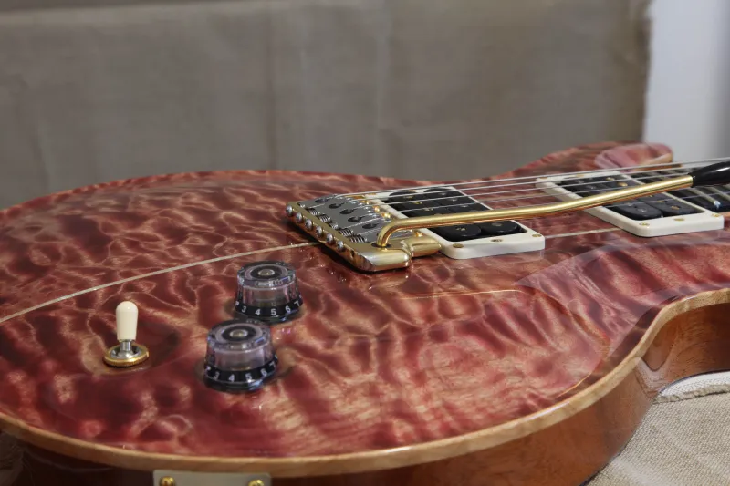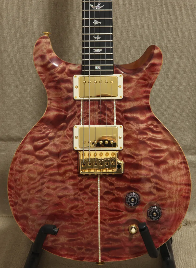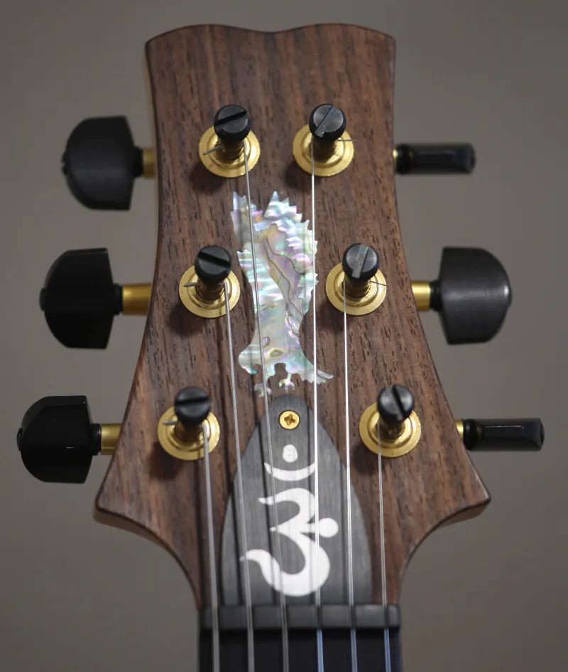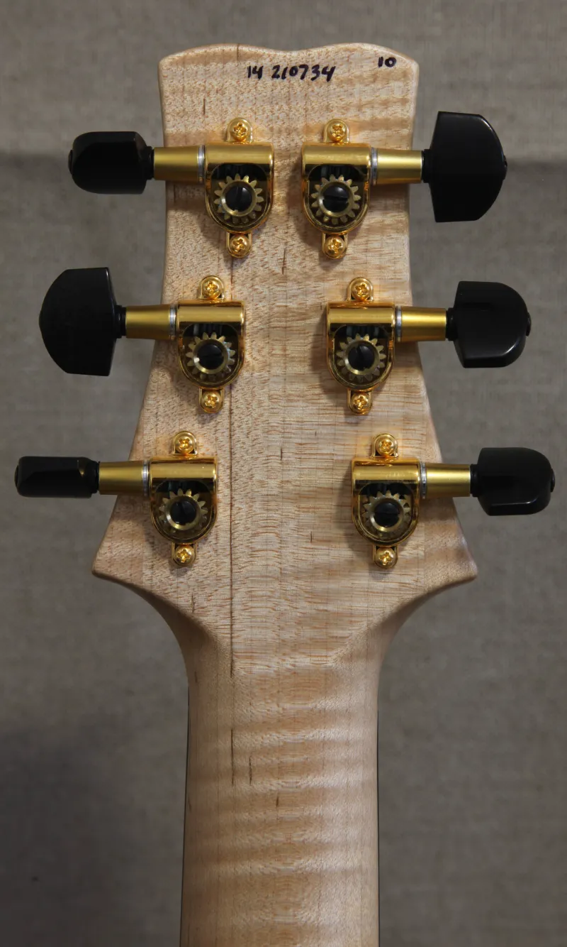 Kiváló állapotú , 2014-es PRS Santana Wood Library. Mahagóni test, pikkelyes juhar top, csíkos jávor nyak, ébenfa fogólap , kagyló madár jelölők gyöngyház kontúrral, kagylóból készült sas a fejen, ébenfa hangoló kulcs gombok. Most Dragon I hangszedők vannak a gitárban, de az eredeti felezhető Santana hangszedőkkel adom tovább.Verknüpfter Testbericht