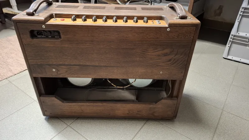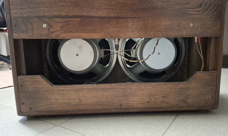 A képeken a diófa színű darab látható, de van egy Warehouse ET12 hangszórókkal szerelt testvére is, világosabb fa színű dobozban.