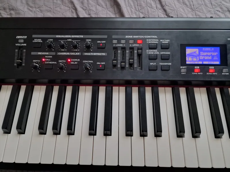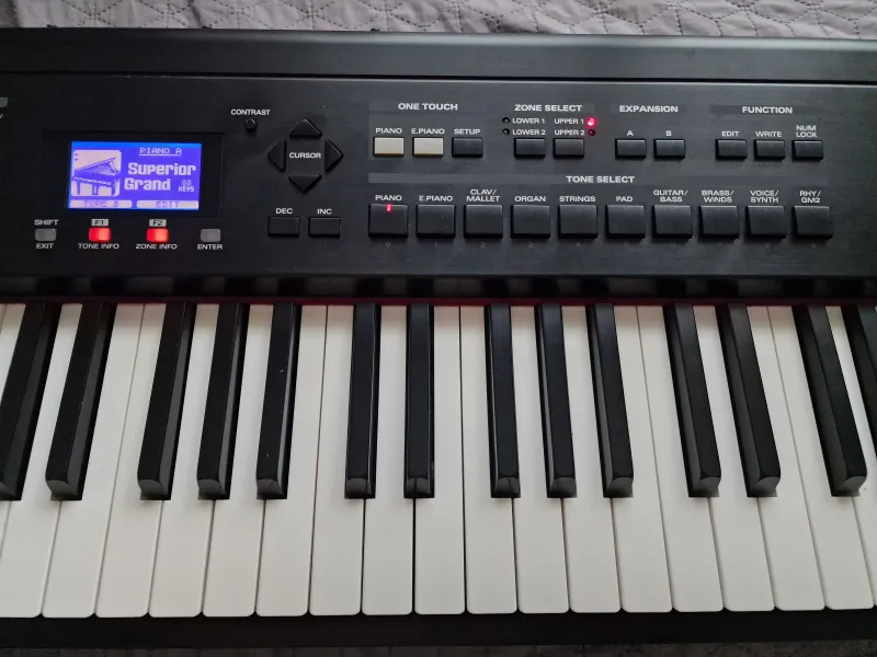 Eladó egy Roland RD-700sx színpadi zongora.Másik zongora vásárlása miatt adom el. Van rajta pár szépséghiba, egy karc az előlapon, az egyik billentyű kicsit sárgásabb színű. Egyébként szépen működik, ilyen szempontból hibátlan, nem recsegnek a potméterek, csatlakozók. A billentyűk finoman billennek, szépen egy síkban állnak, jó az állapota a mechanikájának.