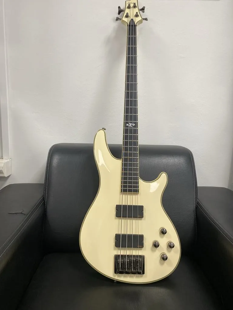 Sziasztok! Eladó Schecter Blackjack ATX C-4 basszusgitárom, nagyon szép, megkímélt állapotban!Full mahagóni test, mahagóni nyak, ében fogólap, aged white finish. cream binding, aktív elektronika, az eredeti hangszedők és elektronika EMG-re lettek cserélve, óriásit szól a hangszer!