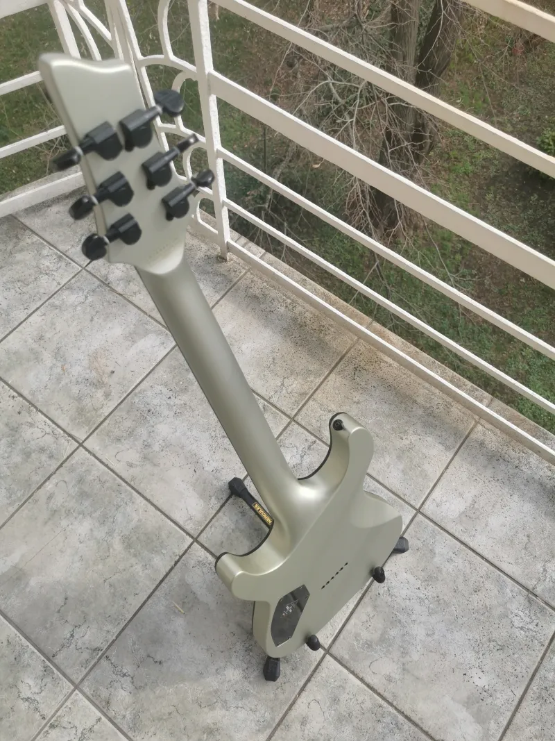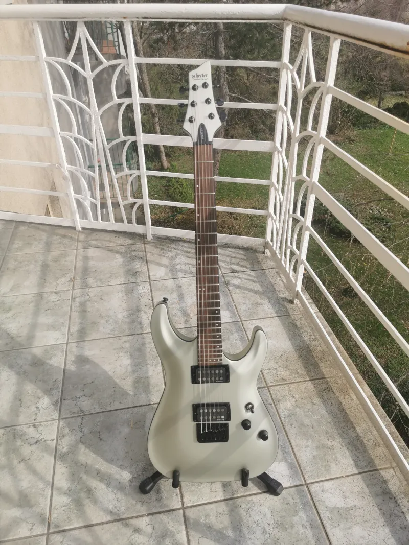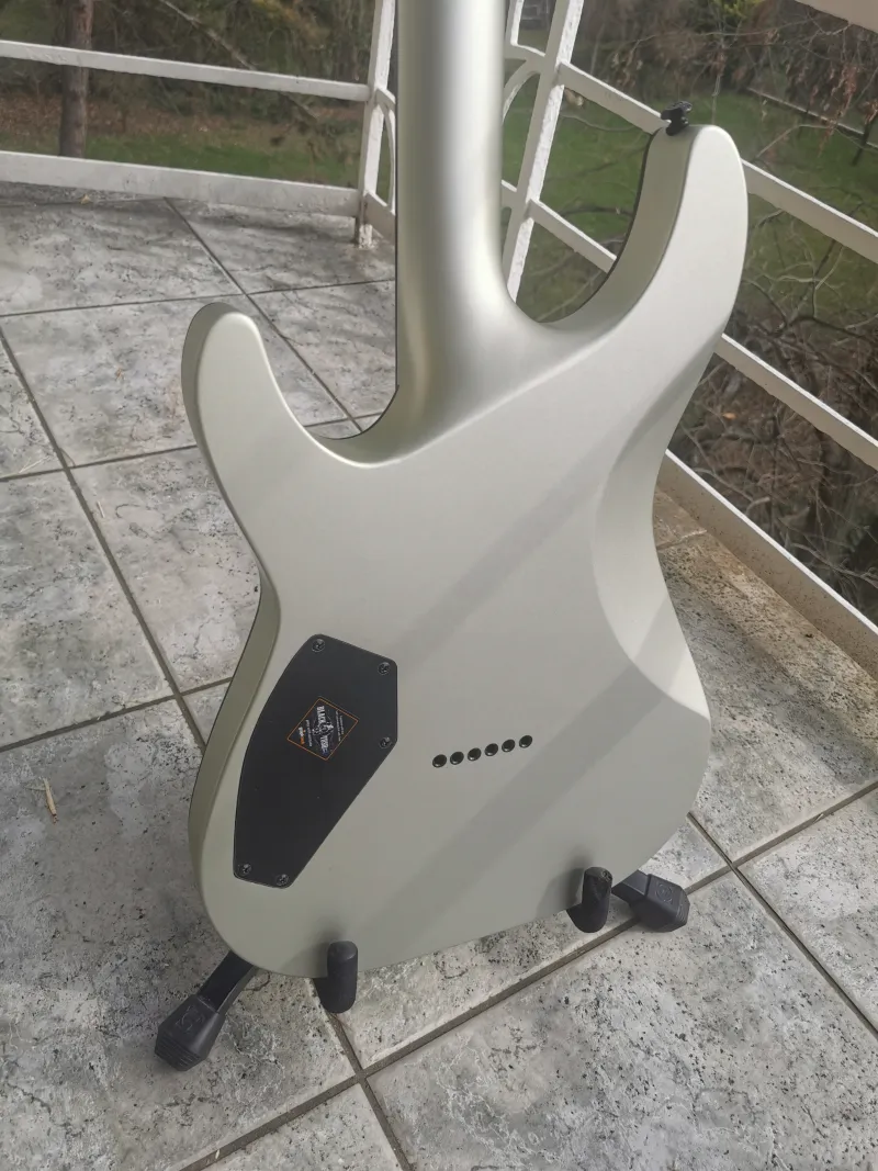 Eladásra kínálok egy 2014-es gyártású, Koreai Schecter Stealth C1 típusú gitárt, ritka ezüst színben. Pofon egyszerű, minden sallang mentes hangszerről van szó. Full mahagóni, átmenő nyakas, passzív elektronikájú kis gépezet. Egy piszok jó hangú rokkerkedős/metálkodós, masszív hangú gitár. A Schecter Super Rock pickupok nagyon szépen teszik a dolgukat. Nem fulladnak úgy, mint a többi gyári Schecter hangszedők. A nyaka a Blackjack/SLS szériából ismert vékonyabb C profil. Nagyon jól kézre áll, se nem vastag, se nem sport nyak.A fényezés külön említést érdemel, mert a matt festés nem kopik/fényesedik ki a sok játékot követően mint más, magasabb kategóriájú matt hangszerek esetében.