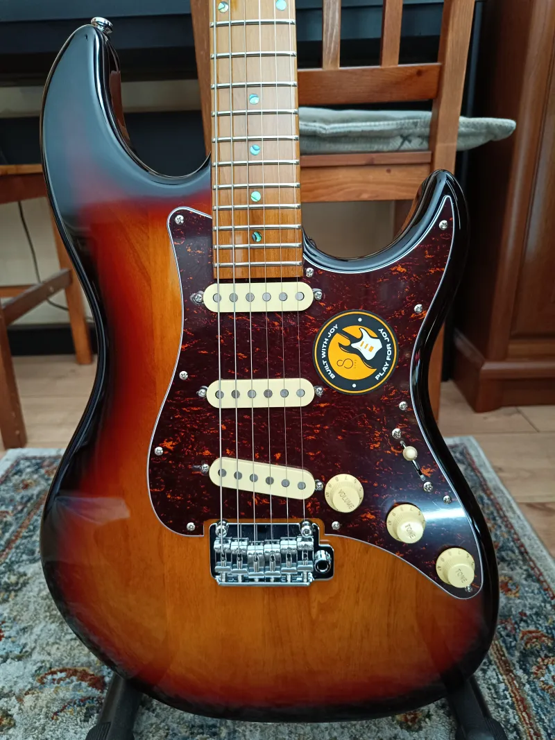 - Az S7 hagyományos Stratocaster alakú teste az égerfa családba tartozó magasabb erezet minőségű (fine-grained) fafajból készült, ami vintage és természetes megjelenést kölcsönöz neki - hihetetlen jó rezonancia és hang kitartása van a hangszernek
