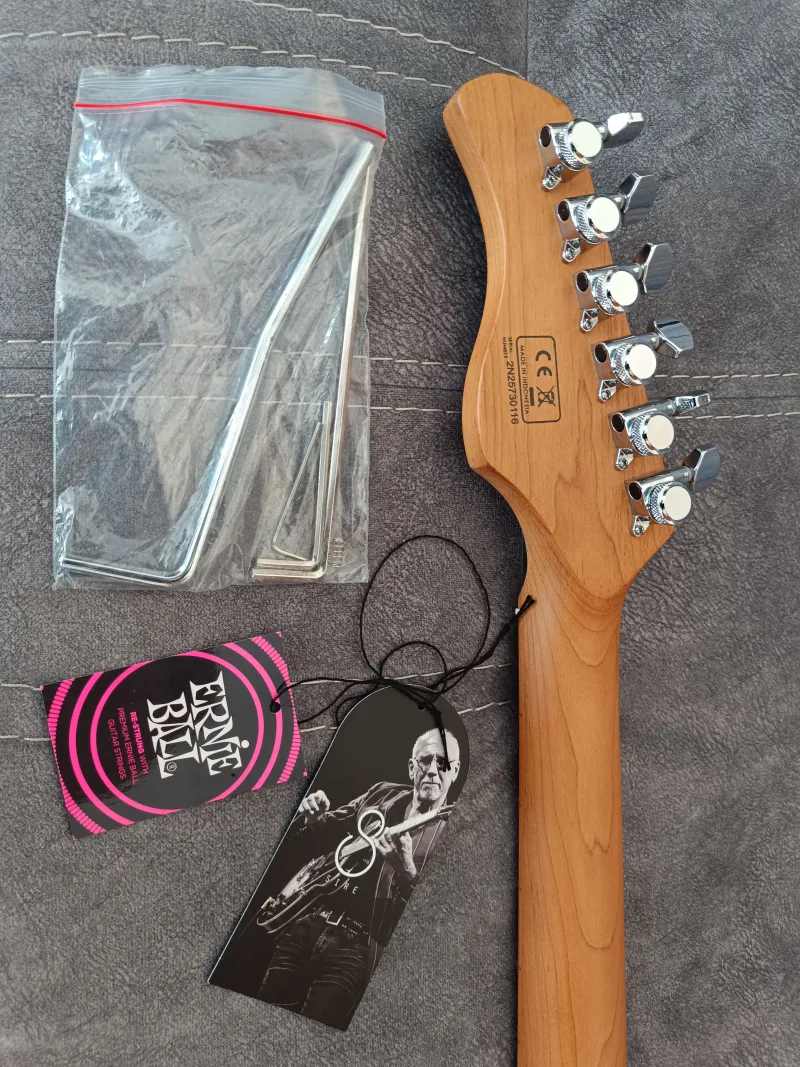 Teljesen gyári, új állapotban van a gitár, pár hónapos, gyári garancia van rá (még 2,5 év), igazából csak kipróbálva volt, mert az akusztikuson játszottam. Minden gyári csomagolása, doboza megvan, teljesen karcmentes, fóliás hangszer. Figyelem, ez az S7 Vintage modell!