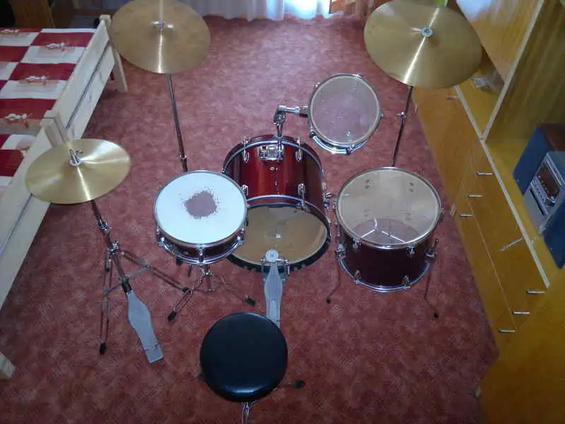 Mit 4 zusätzlichen Becken (Paiste/Sonor), 1 zusätzlichen Ständer mit Oberteil und einem Schlagzeughocker!
