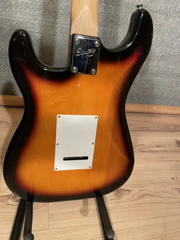 2010-es Squier Bullet Strat. Belépő szintű gitár, kezdőknek ajánlom. Még a Coda-ban vettem anno, de már keveset használtam, az utóbbi időkben csak lógott a falon. Egy kis sérülésen kívül (képen látszik) nincs probléma vele. Könnyen játszható élvezhető hanggal.Specifikáció