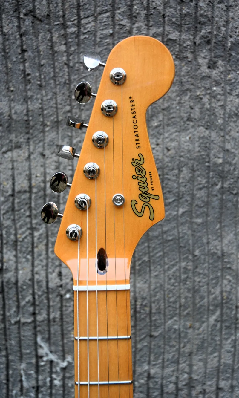 Squier Classic Vibe `50s Fiesta Red Stratocaster elektromos gitár. A hangszer, csak a beállítás és a fotózás kedvéért lett kicsomagolva.Verknüpfter Testbericht (3)