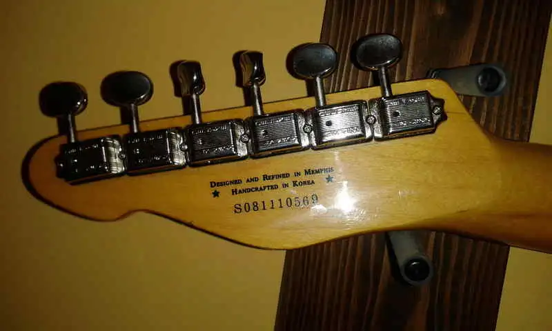 huendeskesIn schönem Zustand, sehr komfortabler Ahornhals, Sumpfesche-Korpus, zwei Wilkinson Single-Coil-Tonabnehmer (Push-Pull-Poti), Wilkinson Hardware, kompensierte Sättel. Ehrlicher voller Klang.