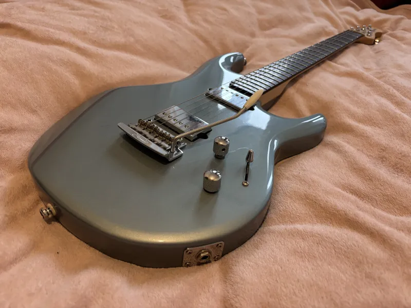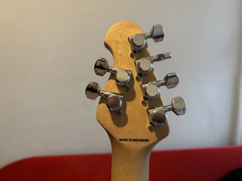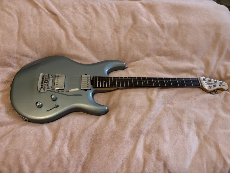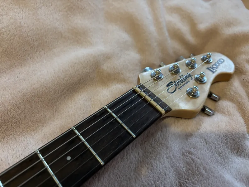 Eladó Sterling LK100D gitár. 9-42-es húrokra beállítva. Dimarzio hangszedőkkel. A pickup kapcsoló egy picit, de a működését egyáltalán nem befolyásolja, tökéletesen működik. A hangerő poti benyomásával aktiválható a booster.Verknüpfter Testbericht