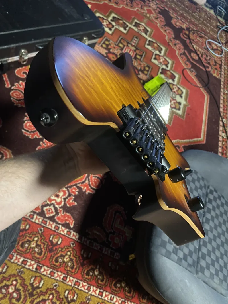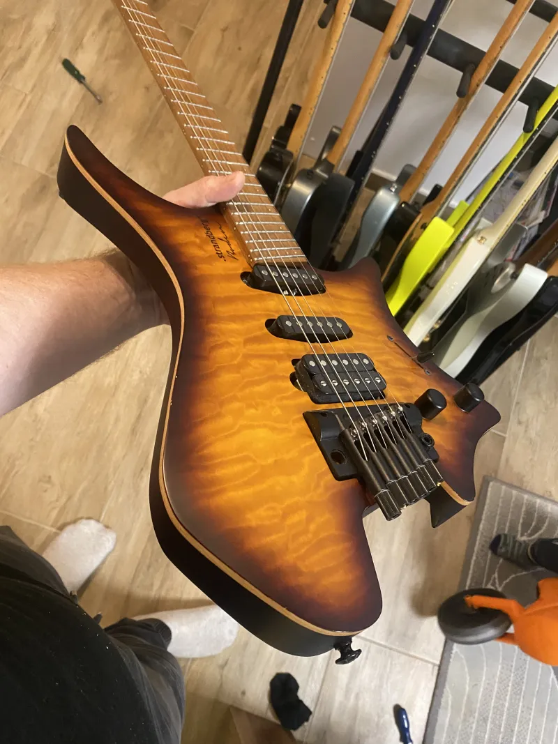 Eladó Boden Standard 6 Bengal Burst juhar top, állítható keménységű tremoló stopper, eredeti tokjával, szerszámaival, qc tanusítvánnyal..Jó állapotú és minőségű műszer.