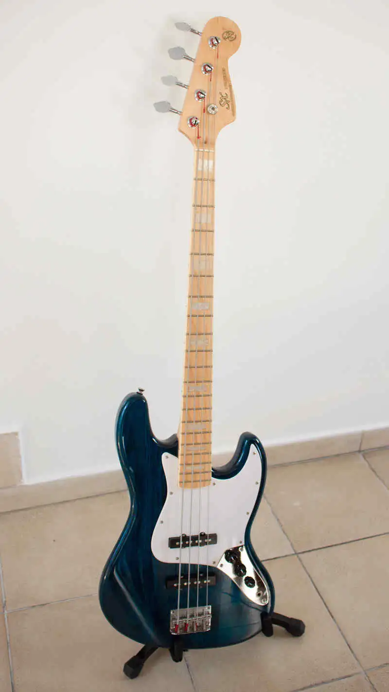 huendeskesSX SJB75 Trans Blue Jazz Bass im fabrikneuen Zustand zu verkaufen. (Dieser hat noch den Fender Kopf, den gibt es neu nicht mehr.) Er schlägt die Squire Vintage Modified Serie locker, ein super Jazz Bass Sound.