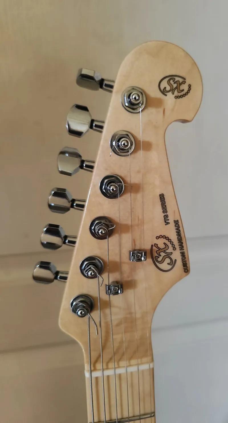 Eladó egy 4 hónapos, garanciális SX SSt Alder gitár.A szobát nem hagyta el.A húrkulcsok kilettek cserélva satus hurkulcsokra.Természetesen az eredeti kucsokat adom hozzá. Adok hozzá szivacsos tokot.Szombathelyen kipróbálható.A posta is mehet a vevő terhére. Csere köszi nem érdekel.Az SX SX SST ALDER 3-Tone Sunburst elektromos gitár tökéletes választás mindazok számára, akik szeretnék felfedezni a gitározás világát. Az ikonikus Stratocaster forma és az amerikai éger test nemcsak esztétikailag vonzó, hanem kiváló hangzást is biztosít.