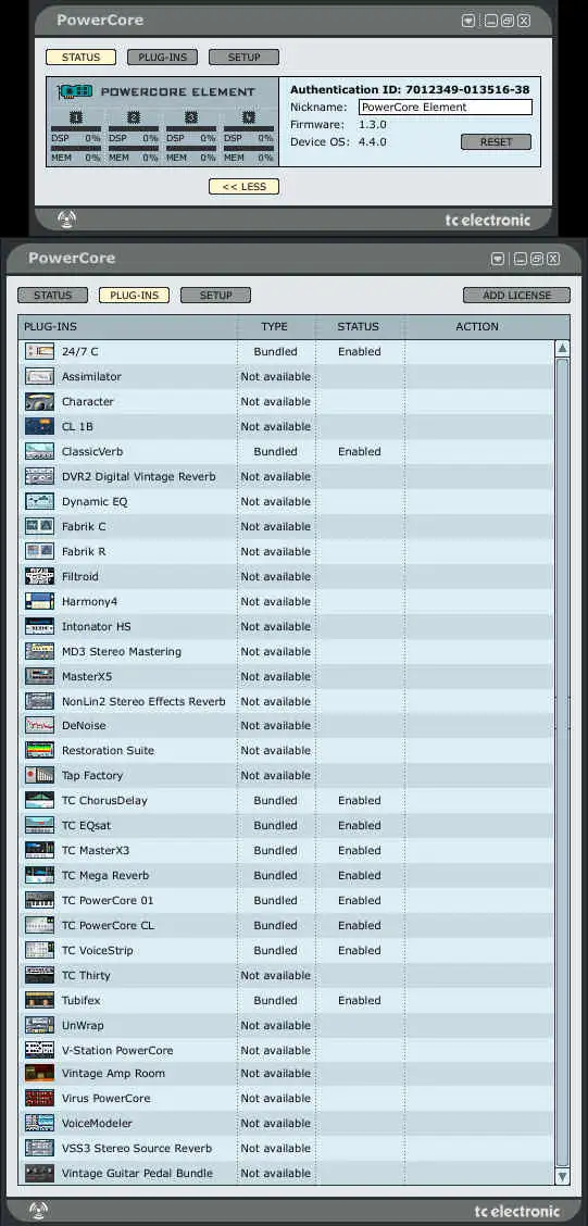 huendeskesZum Verkauf steht eine TC Electronic PowerCore PCI (kein PCI-E!) 4-Prozessor, VST/AU-kompatible DSP-Karte mit 10 Plugins (Kompressor-Limiter, Chorus-Delay, Reverb, EQ, Amp-Modeller, De-Esser, Finalizer + Roland SH-101 monophoner Synthesizer-Simulation). Sie wird mit einem 64-Bit-Treiber geliefert, OSX/WIN-Systeme werden unterstützt.