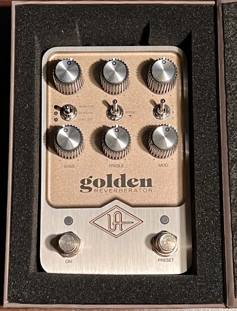 Universal Audio UAFX Golden Reverberator zengető pedál eladó. Magyarországon vásárolt, gyakorlatilag csak kipróbált és teljesen karcmentes, gyári állapotú, még garanciális darab.Csere, köszönöm, nem érdekel most. Postázás működhet, Foxpostos küldés preferált.