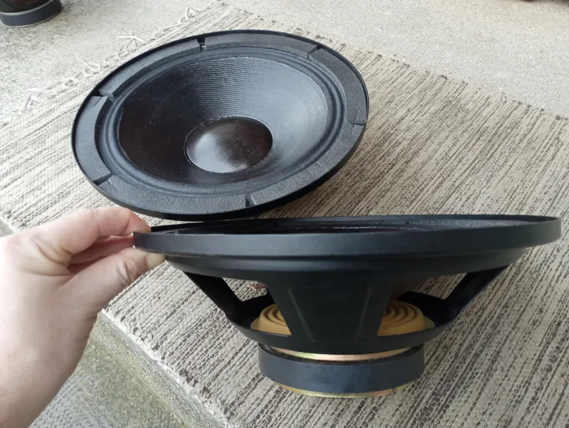 Eladó egy pár 12˝-os ma már nem gyártott Vidi gitárhangszóró. Egy pár,azaz 2 db, 8-ohmosak. Papír felső felfüggesztés , keményebb pille,50mm -es lengő.Gyakorlatilag eddig parkoltak ,nem voltak használva. Csomagként is tudom küldeni , bolondbiztosan csomagolok!Verknüpfter Testbericht
