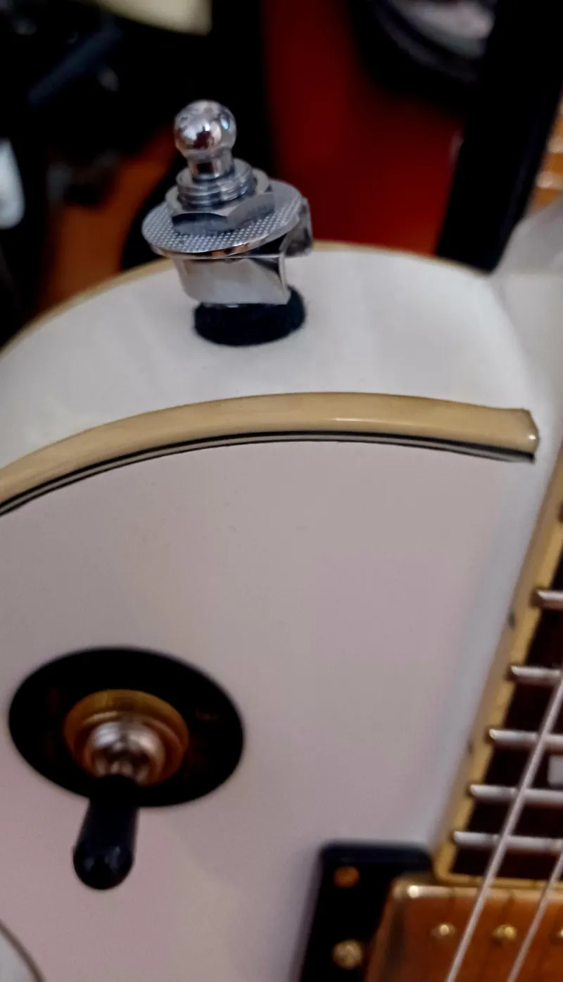 Vintage V100 Arctic White (AW) Les Paul, elektromos gitár (2011). Mahagóni test, ragasztott mahagóni nyak, Wilkinson hangszedők, kulcsok, kifogástalan állapotban straplockkal.Verknüpfter Testbericht (1)