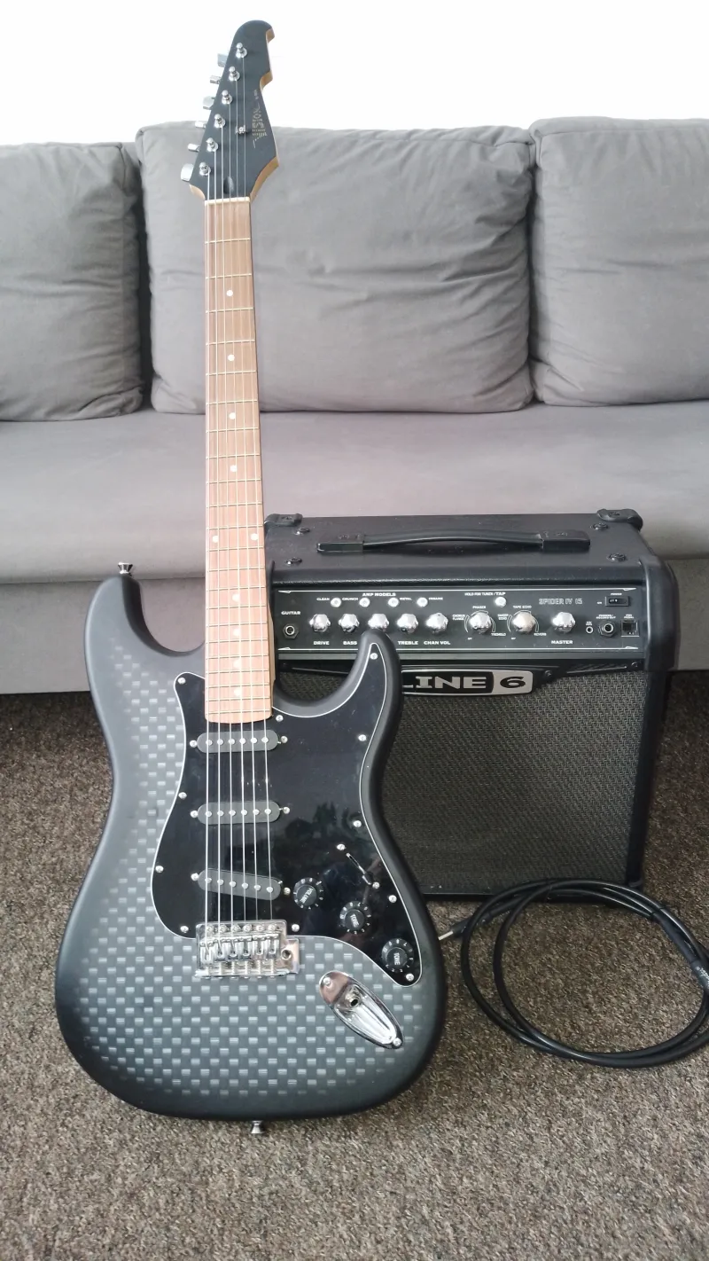 Gitár: Vision ST-5 6 húros ,Stratocaster stílus. Égerfa test; juhar nyak, rózsafa fogólap 3 single coil; 5 állású kapcsoló.