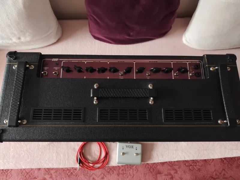 Vox csöves gitár kombó, hozzá tartozó gyári pedállal, plusz adok hozzá Jack kábelt , újszerű , megkímélt állapotban eladó.2x 30 cm es Vox hangszóró, 30W teljesítmény...