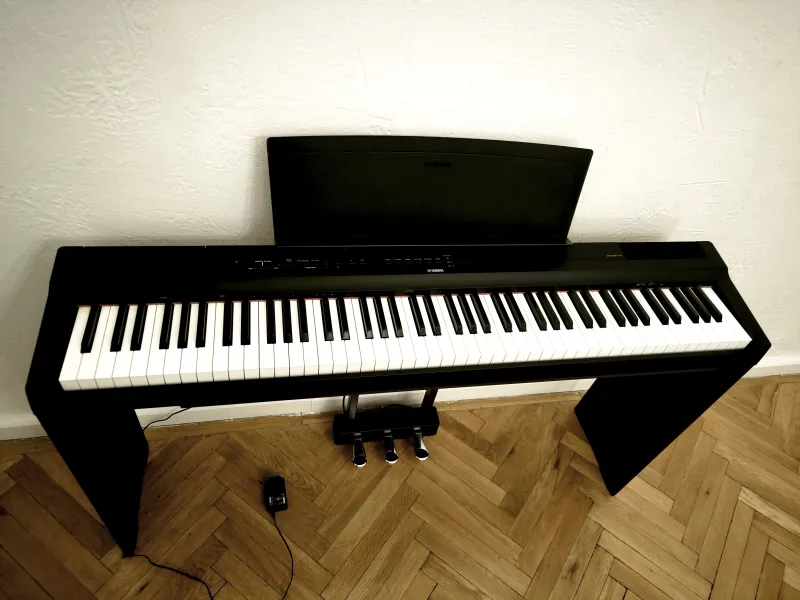 3 éves, az utolsó szériából van, gyakorlatilag új zongora. A köztes modell (P-125a): 2022 végén és 2023-ban egy frissített, de bizonyos funkcióiban (például a beépített USB audio interfész hiánya) módosított változat, a Yamaha P-125a vette át a helyét ideiglenesen. Jóval gyengébb, chip-pel.