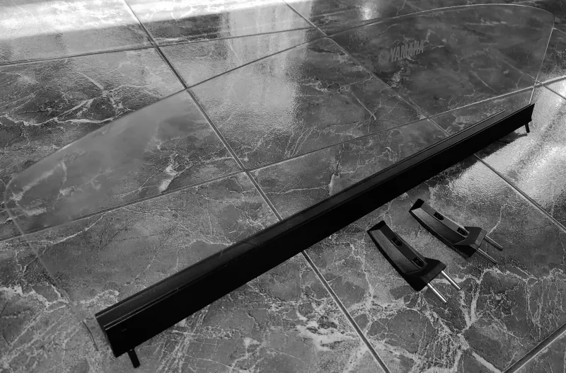 Használatból adódott hajszál karcok valamint egyik szélén halvány matt folt-tól eltekintve hibátlan állapotú! Rögzítő konzolokkal adom!