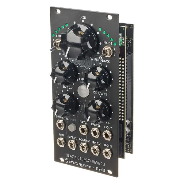 Eurorack Module Stereo reverb module with 3 selectable algorithms (Room, Hall, Cathedral) and 3 selectable tonal charakteristics (Tape, BBD, Digital) 24bit48kHz signal processing Adjustable parameters: Size, Tone, Spin, Feedback, WetDry-Mix CV inputs for Size, Tone and Feedback Freeze button with gate input Stereo inputs and outputs LED level meter Memory locations for 10 presets Power requirement: 120mA (+12V) 39mA (-12V) Width: 12 U Depth: 35 mm 30 30-Day Money-Back Guarantee 3 3-Year Thomann Warranty Available since October 2023 Item number 577480 Sales Unit 1 piece(s) Reverb Yes Delay No Multieffect No Misc.Effects No Width 12 TE HP