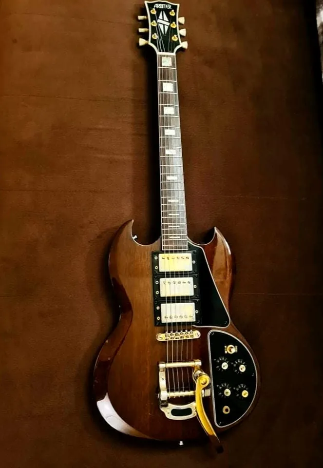 Arbiter E320. Az 1974-ből származó, Japánban, Greco (Ibanez) által gyártott terméket az Egyesült Királyságban is Greco márkanéven forgalmazták. Ez a nagyszerű megjelenésű, de ritka Gibson SG Custom másolat Bigsby vibratoval