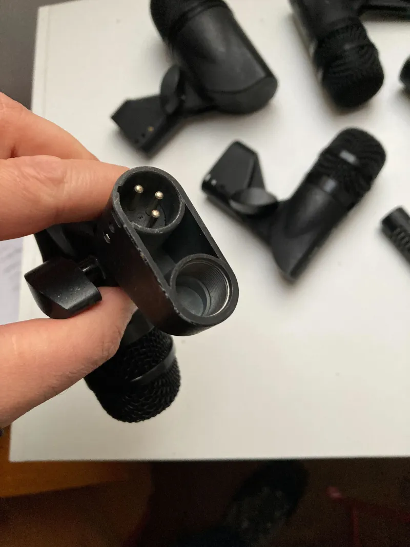 Eagletone dobmikrofon szett. Lábdob, 4 tom, 2 kismembrános kondenzátor. A tom mikrofonok szerintem kiemelkedően jók az árkategóriához képest, a kis kondik is használhatóak, a lábdob a gyenge láncszem, de van, működik, használható. Egy fórumon azt olvastam, basszus láda hangosítására igazán jó. Ennyi pénzért szerintem nagyon jó szett, a tom mikrofonok szerintem sokmindenre bátran használhatók, általános backup mikrofon szettnek is jó. Nagyon masszív szett. Karcos, láthatóan használt, de tökéletesen működik mindegyik mikrofon.Shipping