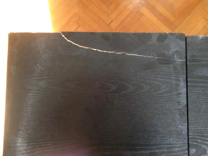 There are external scuffs, a larger crack on the top has been glued. The front panel is present, also worn here and there.