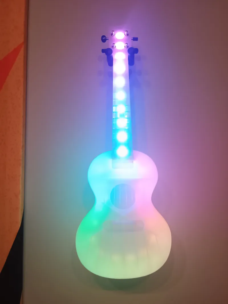 Eladó egy többfunkciós világító ukulele.Usb C töltés, hangérzékeny fényjáték, igazi fesztiválkellék. Tok jár hozzá