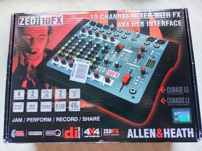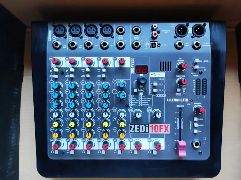 Eladó egy Allen & Heath ZEDi-10FX külső hangkártya! Hibrid kompakt 10 bemenetes analóg keverő/USB hangkártya effektprocesszorral. 4 mikrofon/vonalbemenet különálló XLR és TRS aljzatokkal2 sztereó bemenet TRS aljzatokkal