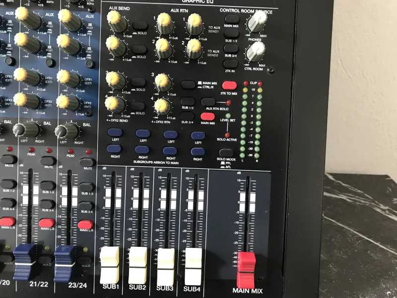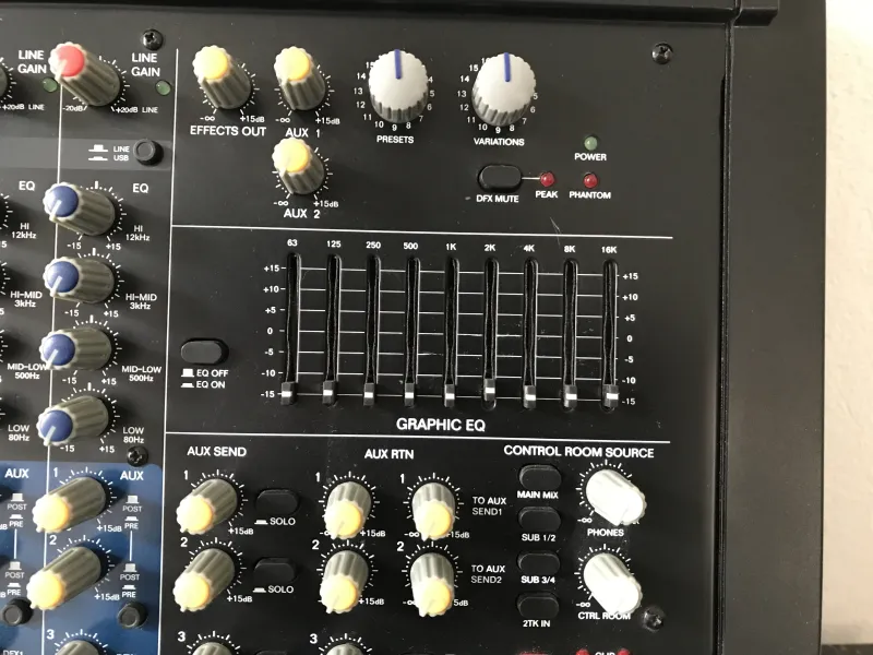 Alto Professional Zmx 244Végfok erősítős 24 sávos keverő, Alesis beépített effektekkel. USB csatlakozással is rendelkezik.