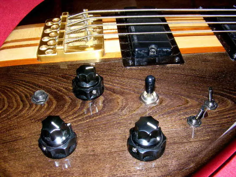 Ash body, 5-piece maple-walnut neck-through, rosewood fingerboard, brass bridge and nut, SD BassLines pickups, Zolkow electronics.