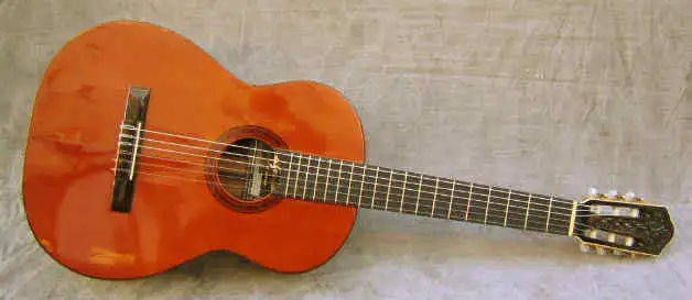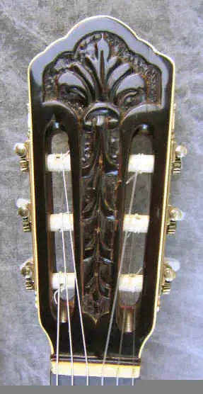Composition: Hand-carved head, Indian ebony fretboard, specially rosewood back and sides, now banned. Canadian red cedar top.