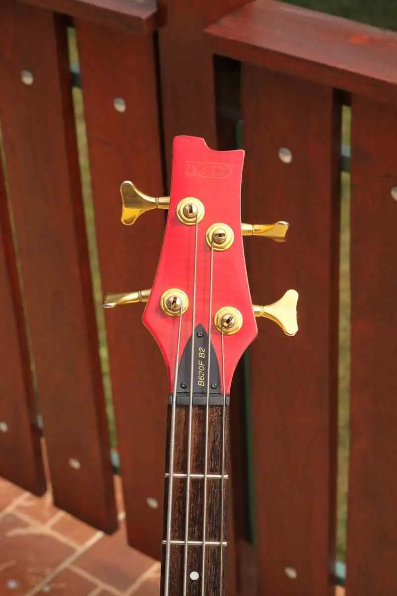 huendeskesA rare Music Drive B620F B2 bass guitar for sale. Although not much information can be found online about the brand, all available information is positive. Accordingly, Music Drive was an Asian company that produced high-quality instruments for a short period. The neck of the instrument is Canadian maple, the body is basswood with a quilted maple top, and the fretboard is Indian rosewood. The electronics are of very high quality, as is the instrument itself. Its sound is equivalent to guitars worth a hundred thousand more, and its craftsmanship is flawless. The frets are like new, the only sign of use is a few buckle scratches on the back.