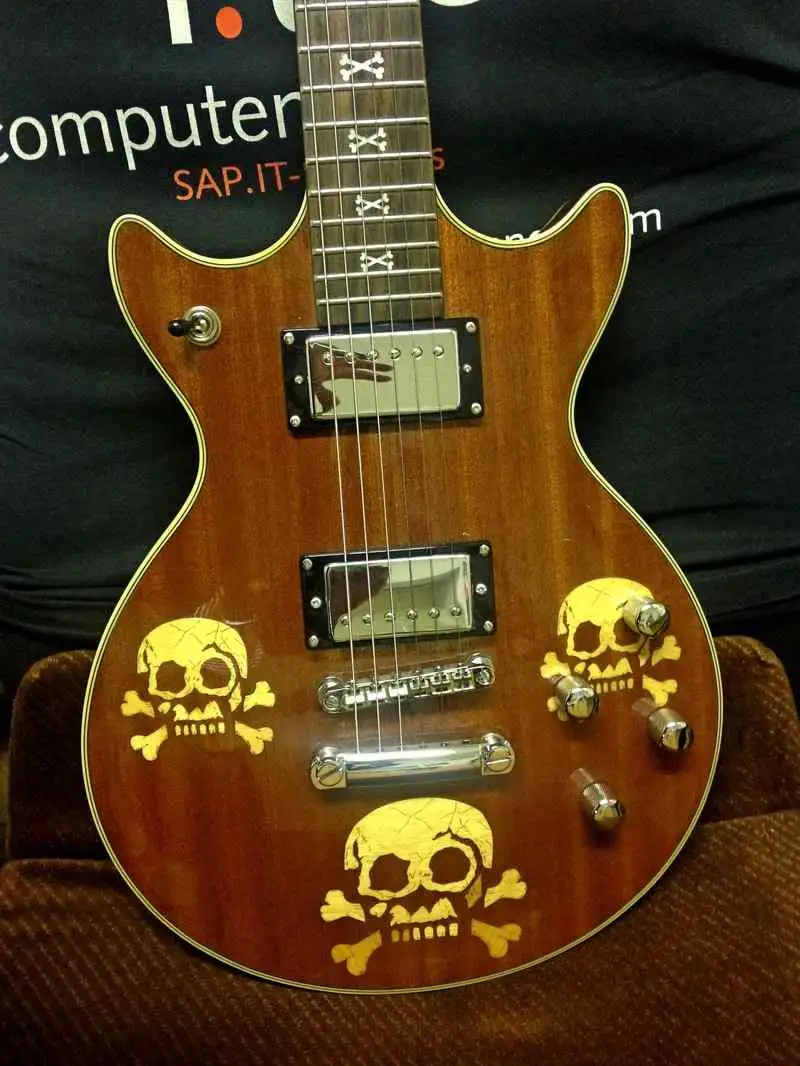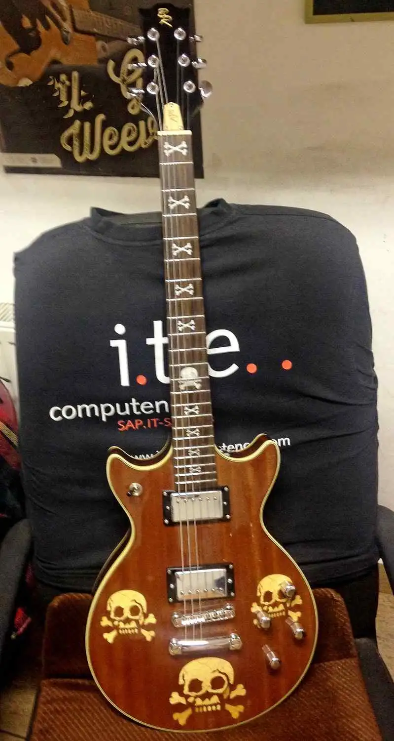 huendeskesI've reduced the price!!!!!!!!! A rare, very elaborately crafted guitar. Semi-hollow mahogany body. Comfortable and light. The skull pattern is not a sticker, but a factory inlay. Its new price was 130 thousand Forints when it was available.