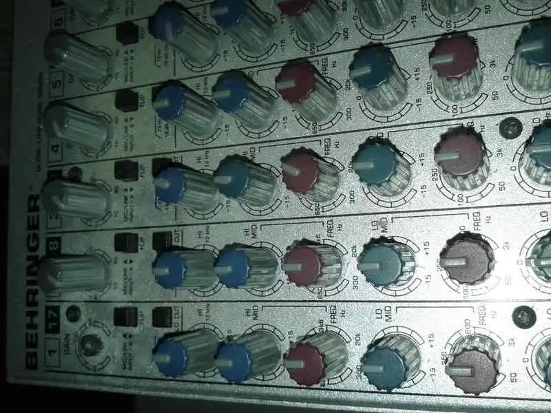 The knob cap of the volume potentiometer and the slider pot cap for channel 1 are missing! The gain pot can be fixed with a little effort!