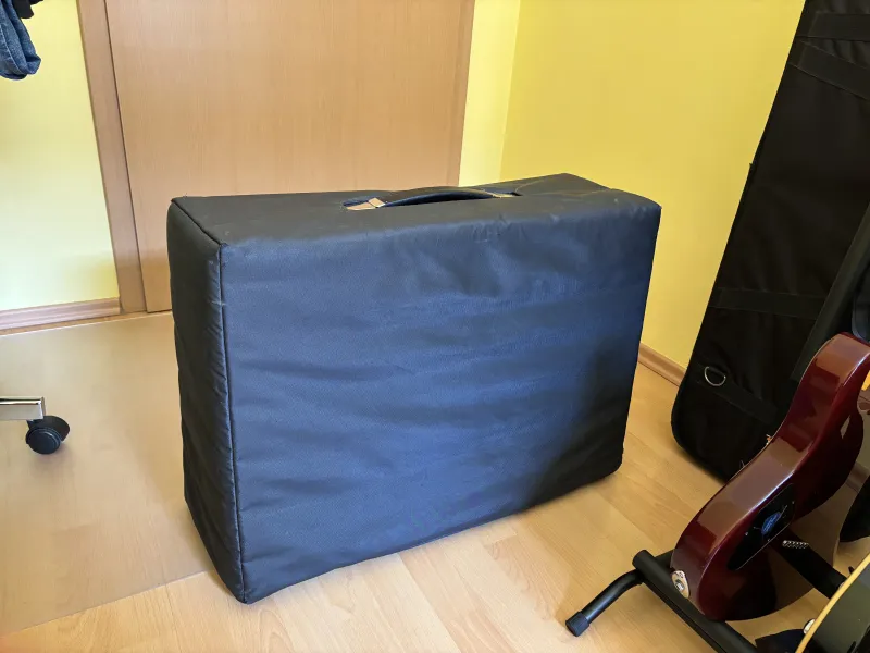 -egy egyedileg méretre gyártott, párnázott védőhuzat az erősítőhöz.