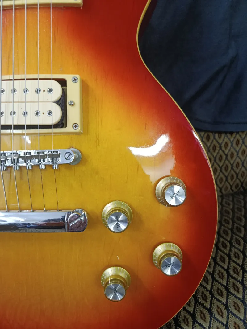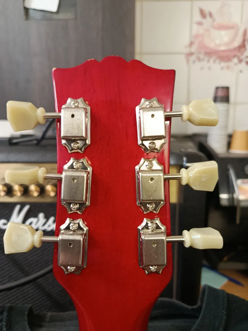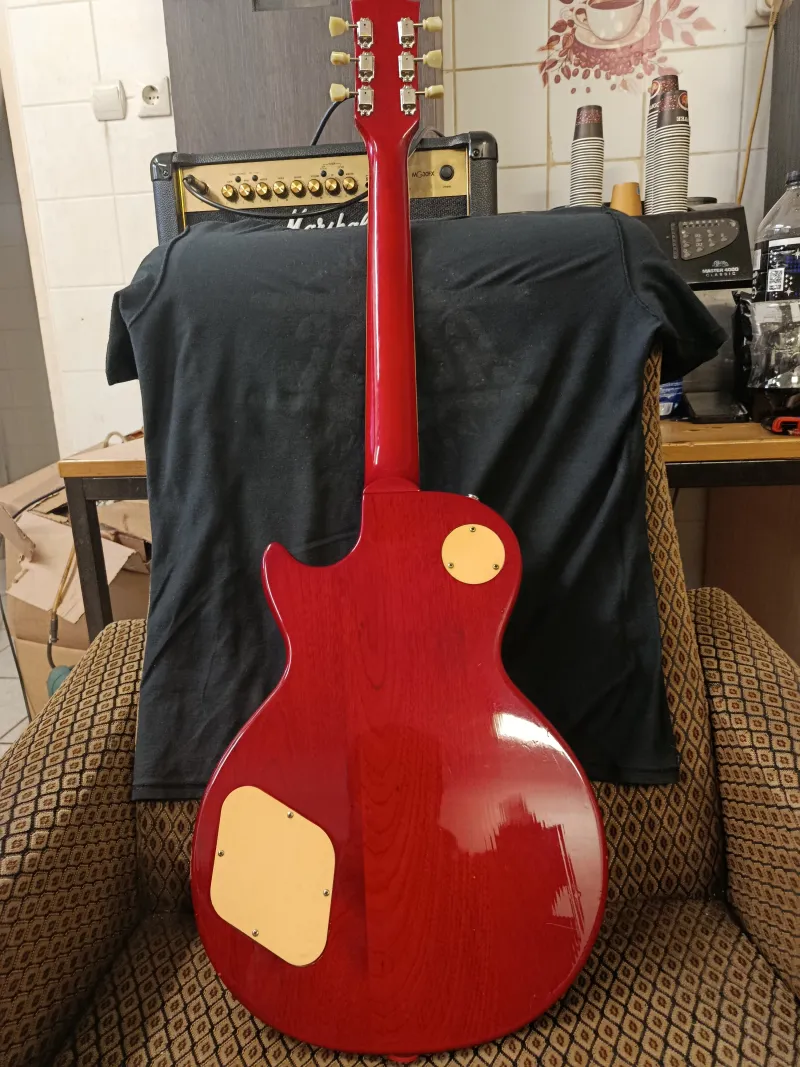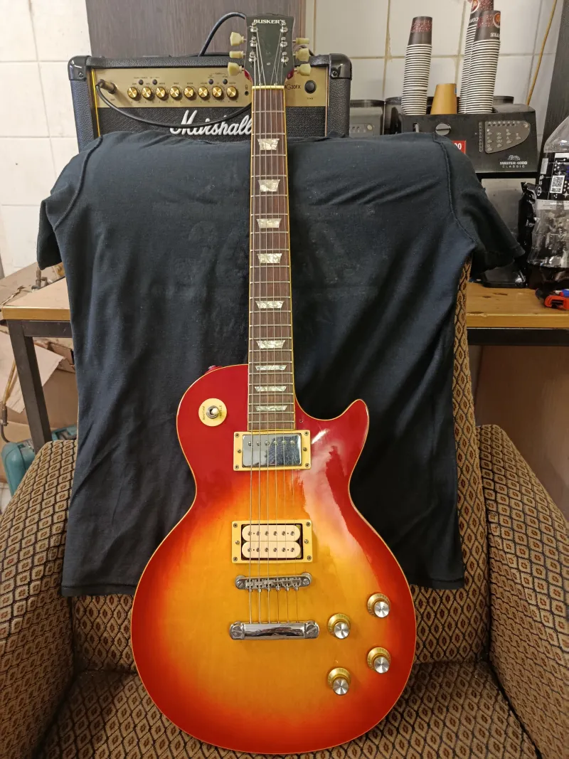 Sziasztok! Eladóvá vált ez a Busker`s les paul formájú 90 es evekben gyártott koreai gitár . Vadonatuj Gotoh kulcsokkal,egy uj DiMarzio DP 100 Super Distortion hátsó hangszedővel es uj D`Addario 10I46 - os húrkèszlettel. Apro kopás van a testen,de azt fotón mellèkelem ès adom hozza a gyari hangszedőjèt is. Egy telefonos felvételt belinkelek ,de előben az igazi ,egy 30 wattos Marshallom van itt,ezen tudjatok kiprobalni. Mondjuk a telo mikrofonja annyira nem bírta :)Connected review