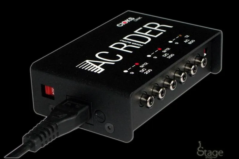 Az új CIOKS AC Rider Link egy rendkívül kis méretű, de nagy teljesítményű tápelosztó effekt pedálok áramellátásához, zajmentesen és izolált kimenetekkel. Az első négy kimenet két izolált részre van osztva, amelyek 200mA teljesítményűek egyenként és 9V vagy 12V feszültséget tudnak adni. A két utolsó kimenet nagy teljesítményű AC áramigényű pedálokhoz használható, 800mA teljesítménnyel és állítható 9V vagy 12V feszültségre. Az 5-6 kimenetek használhatók a EHX elektroncsöves pedálokhoz, bármelyik Kingsley pedálhoz, bármelyik típusú DigiTech Whammy-hez, JamMan, Talker, bármelyik Boomerang pedálhoz, Line6 M9 és bármelyik 4-gombos Line6 modellező pedálhoz mint a DL4, Rocktron Banshee Talk-Box, Ibanez Tube-King Distortion, bármelyik Hughes &Kettener csöves pedálhoz, FoxRox Captain Coconut, EBS csöves Drive-hoz, a Musicom LAB vezérlőkhöz, Mesa Boogie V-1 vagy V-Twin pedálokhoz, Provicence vezérlőhöz, VanAmpsReverbamate, Yamaha Magic Stomp-hoz és még rengeteg más pedálhoz is. A két izolált DC kimenetek kisebb teljesítményű 9V-os vagy 12V-os DC igényű pedálokhoz használható, de Stack Flex kábel összekötésével képes a nagyobb áramigényű pedálokat is táplálni, mint például a Strymon Timeline. A CIOKS AC Rider Link tápelosztónak a hálózati része könnyedén továbbfűzhető és összekapcsolható bármelyik másik CIOKS Link típusú tápelosztóval, így azoknak csak egy hálózati kábel szükséges. A sorba kötött Link tápok utolsó tápelosztójának hálózati kimenetéről bármilyen más eszköz hálózati áramellátása is megoldható.