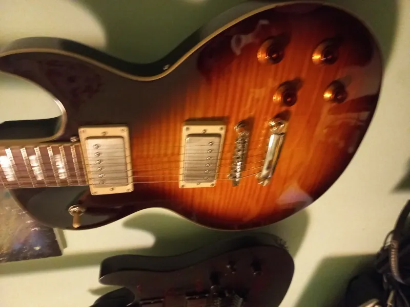 Eladó a kepen látható kiváló hangú les paul , a sarkán esztétikai hiba . Bundok 100% , gyári állapot! Gyári dobozában tudom küldeni!Koptató megvan !