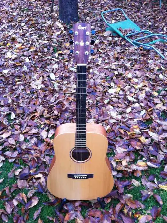 huendeskesFor sale: a Cort Earth Grand OP acoustic guitar in excellent condition, handcrafted with a large body, producing a beautiful, full-bodied, rich sound. The richness of the sound is likely due in large part to the open-pore (OP) wood treatment, which is essentially a faint, satin lacquer instead of hard, heavy lacquers. This treatment doesn't seal the pores of the raw wood, allowing it to resonate exceptionally vibrantly.