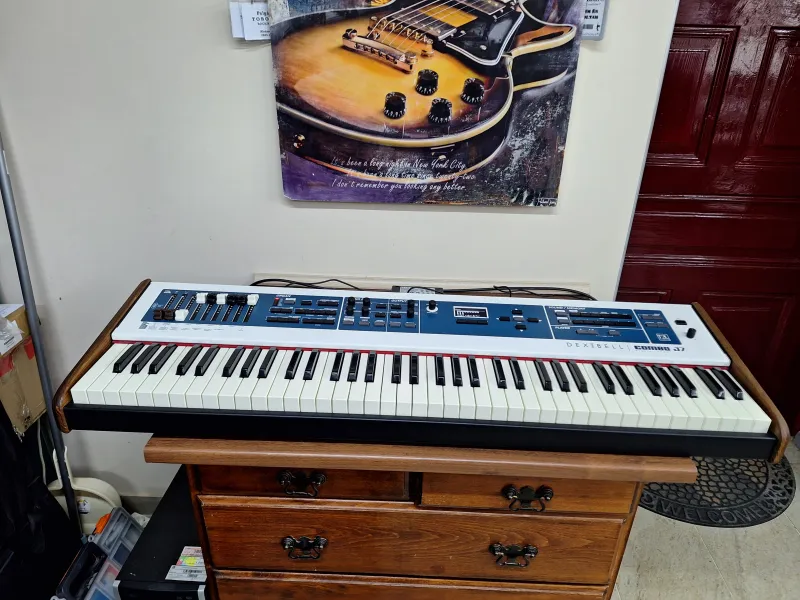 Eladó egy gyári állapotú, újszerű Dexibell Combo J7 orgona kombó 100%-os esztétikai és műszaki állapot.Az első, motoros “draw-fader˝-ekkel ellátott digitális orgona, amely a T2L technológiának (True to Life) köszönhetően tone-wheel és vintage tranzisztoros orgona hangszíneket kínál a legendás VIVO elektromos és akusztikus zongora hangszínek mellett.