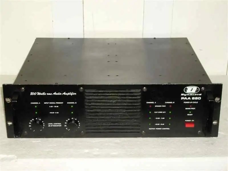 huendeskesThe Dynacord PAA-880 power amplifier shown in the picture is for sale, in perfect condition. 2x400W RMS at 4 ohms, in bridge mode 1x800W RMS at 4 Ohms. Built-in switchable compressor and filter. Stereo-mono-bridge switches. Very punchy dynamic sound with huge lows. It was only a backup power amplifier. Can be tested in Polgárdi.