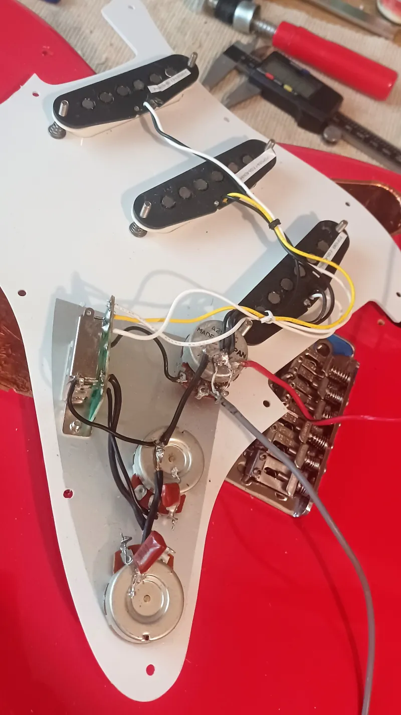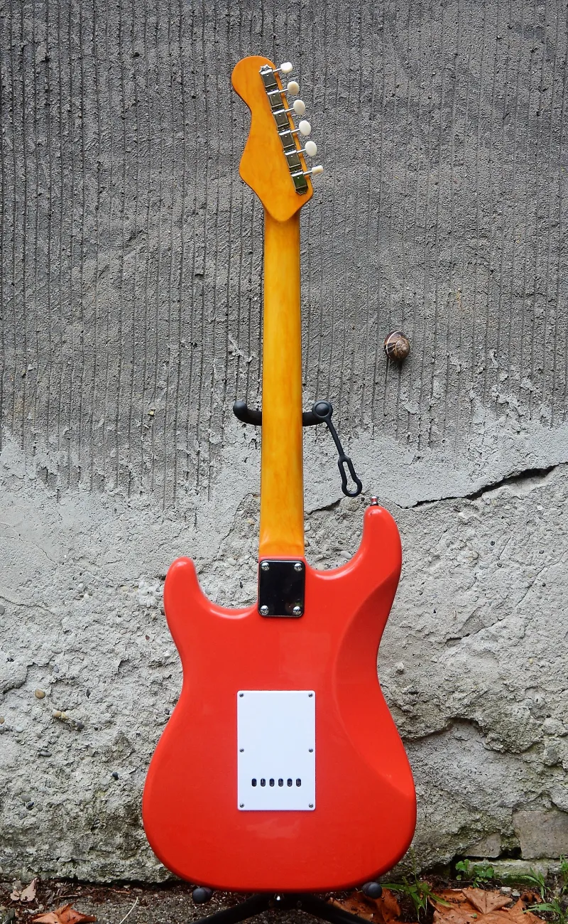 Minőségi alkatrészekből egyedileg épített Stratocaster elektromos gitár. Squier éger test, yellow gloss nyak ében fogólappal, Squier Classic Vibe `50s hangszedők, minőségi elektronika, MIM Fender Standard tremoló, vintage style kulcsok, görgős hurleszorítók, friss 10-es D`Addario húrok, üregek rézfóliával leárnyékolva.Connected review