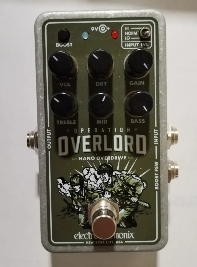 Eladó Elektro-Harmonix Nano Overlord overdrive pedál megkímélt állapotban. Gitárhoz és basszusgitárhoz is használható Low Normál hi mód választás, Overdrive, háromsávos EQ, Dry keverés, Boost kapcsolóval. Gyári tápegységével saját dobozban. Szállítás a vevő terhére.Shipping