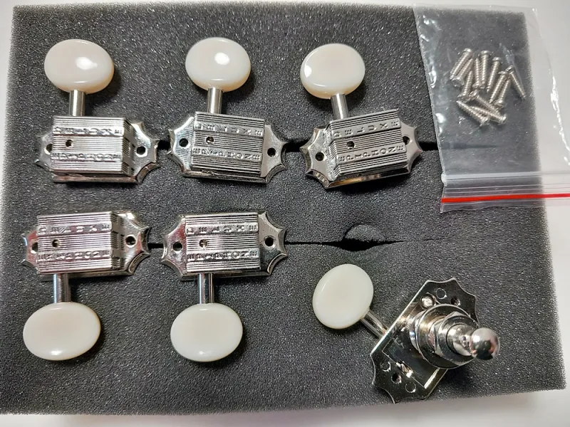 Eladó Epiphone Deluxe 2 soros hangolókulcs készlet, csavarokkal, perselyekkel, nikkel színben.